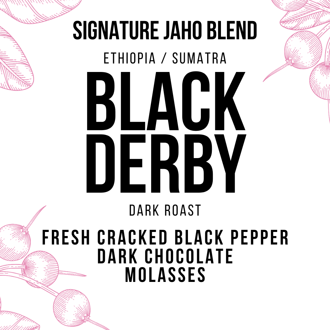 Our darkest roast. A full-bodied roast with attitude, Black Derby blends Ethiopian and Sumatran coffees for a bold cup layered with fresh cracked black pepper, dark chocolate, and molasses. Strong, grounding, and unapologetically rich.